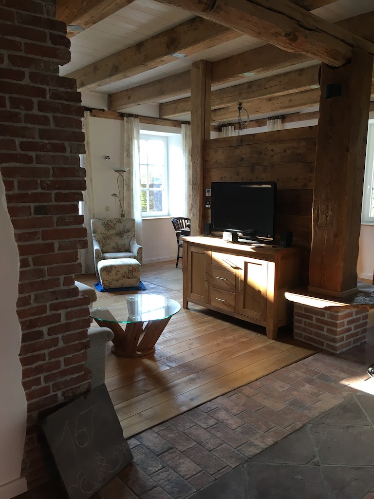 Das typisch-ostfriesische Bauernhaus wurde aufwändig saniert und verfügt über offene Balkendecken, ein barrierefreies Badezimmer, eine moderne, voll ausgestattete Küche und ein gemütliches Schlafzimmer mit Doppelbett. Auch der Ess- und Wohnzimmerbereich ist großzügig und offen gestaltet und macht den Aufenthalt in historischen Mauern zum Genuss